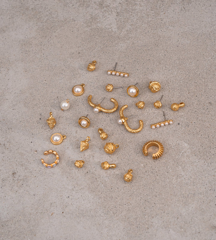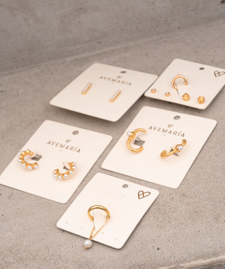 - Aretes elaborados Zamak (aleación de metales) con baño de oro de 24k.