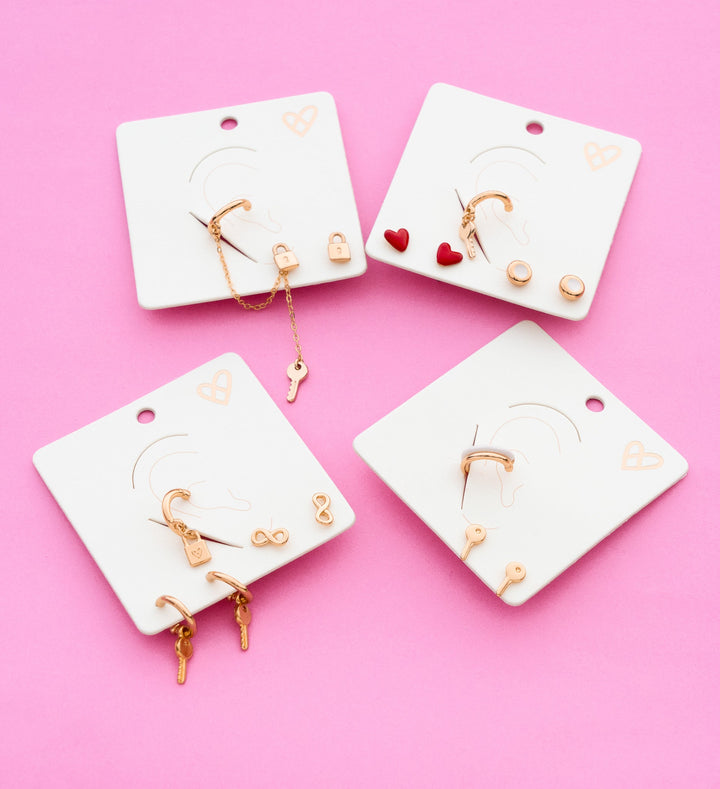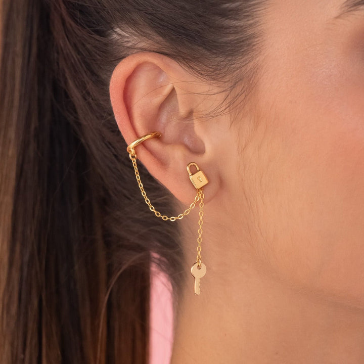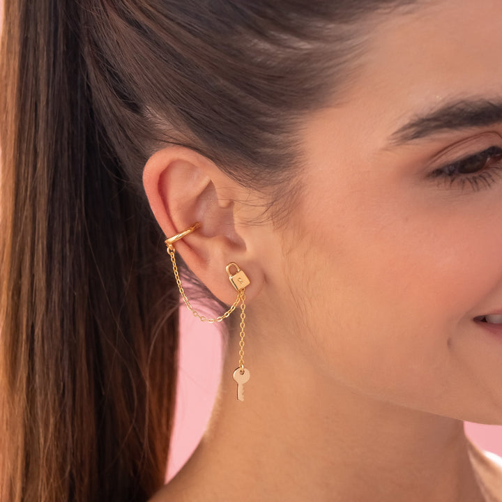 - Incluye: 1 earcuff con dije de llave y 1 par de topos candado