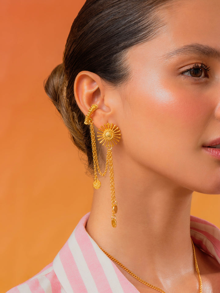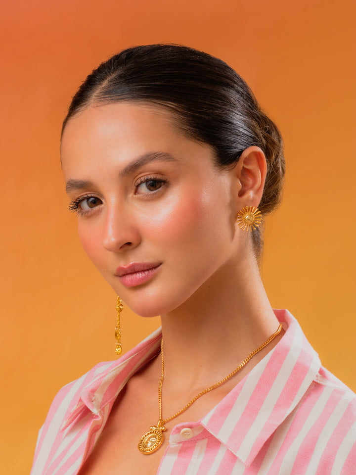 - Aretes elaborados Zamak (aleación de metales) con baño de oro de 24k.