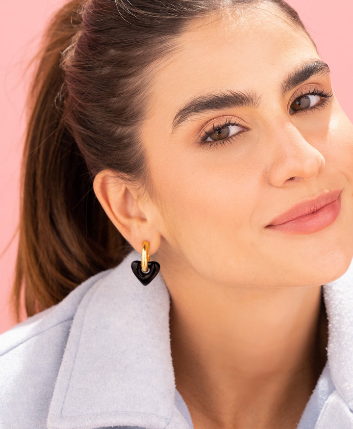 - Aretes elaborados Zamak (aleación de metales) con baño de oro de 24k.