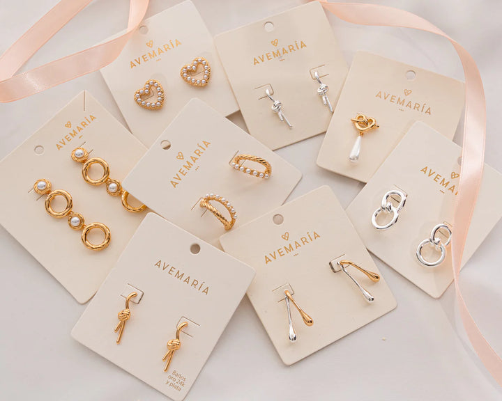 - Aretes elaborados Zamak (aleación de metales) con baño de oro de 24k.