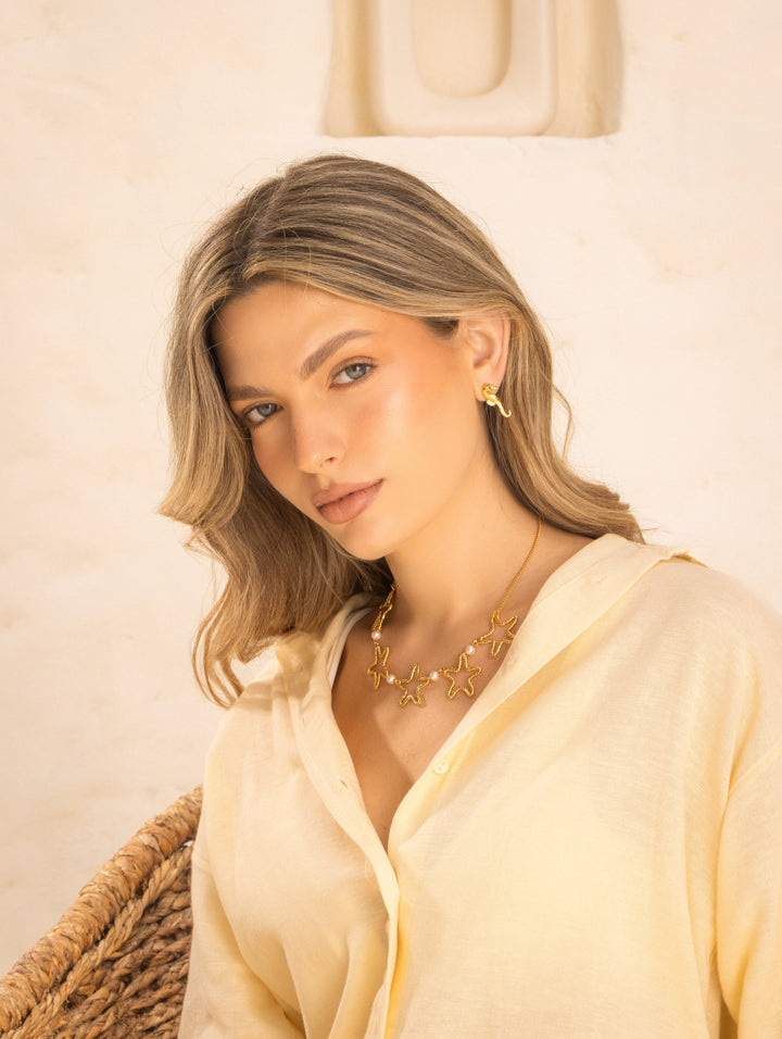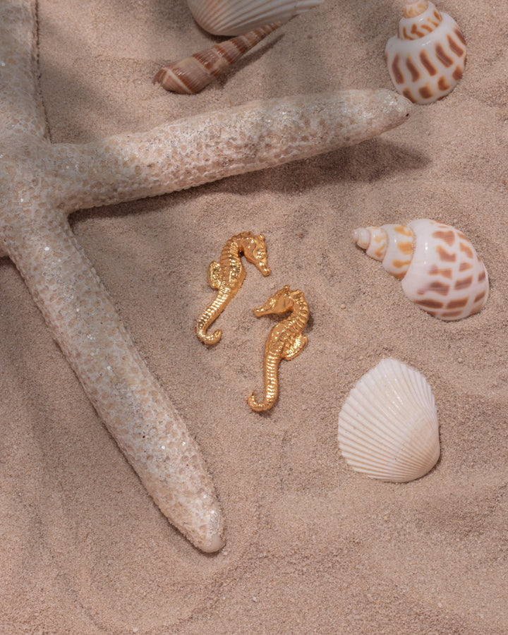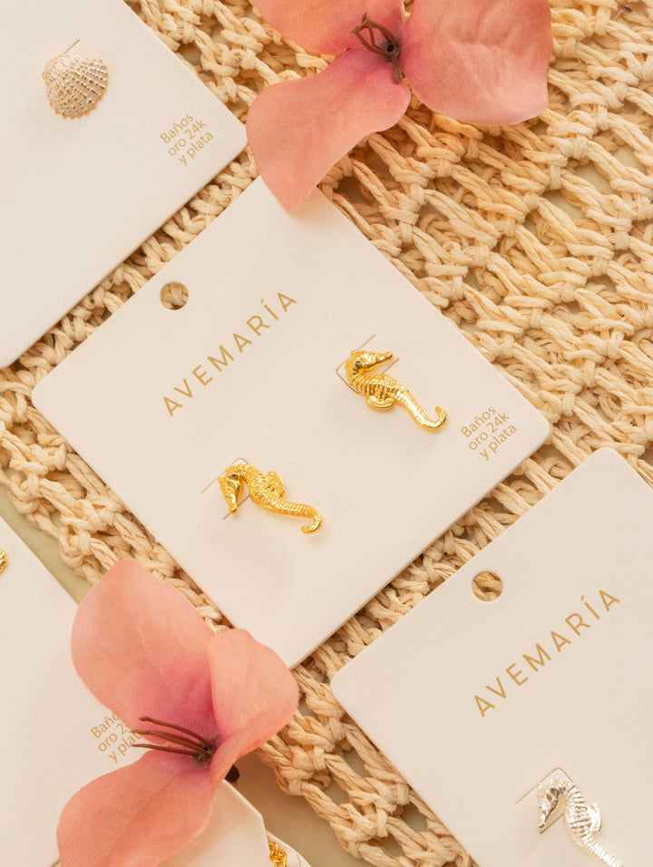- Aretes elaborados Zamak (aleación de metales) con baño de oro de 24k.