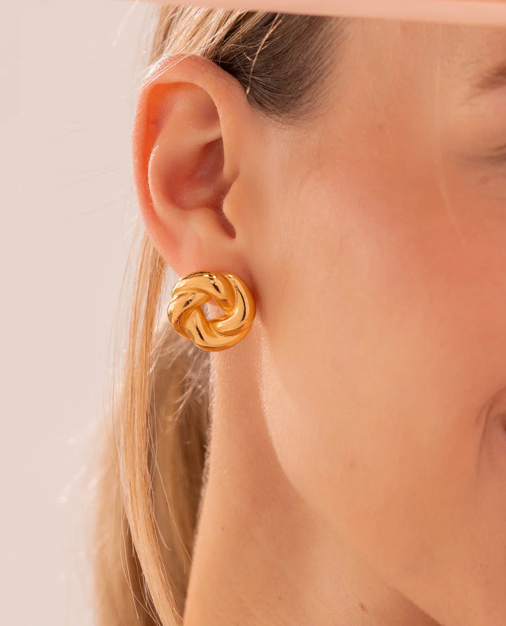 - Aretes elaborados Zamak (aleación de metales) con baño de oro de 24k.