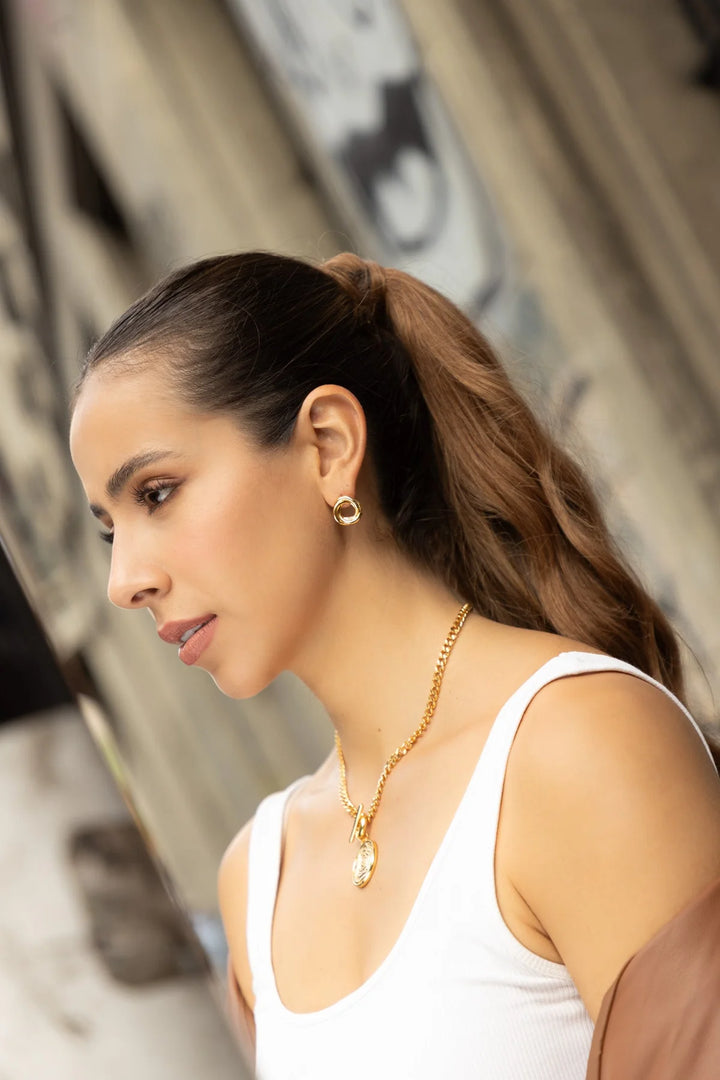 - Aretes elaborados Zamak (aleación de metales) con baño de oro de 24k.