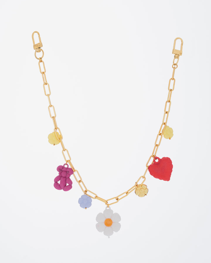 - Diseño multicharm que combina colores y texturas para un accesorio único y lleno de personalidad.