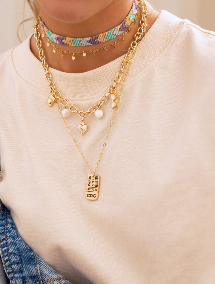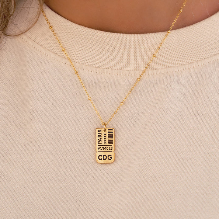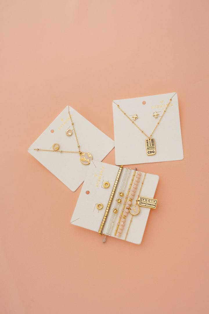 - Incluye: 1 collar con dije de ticket y 1 par aretes tipo topos (aretes pequeños), el diseño del arete te llegará según disponibilidad.