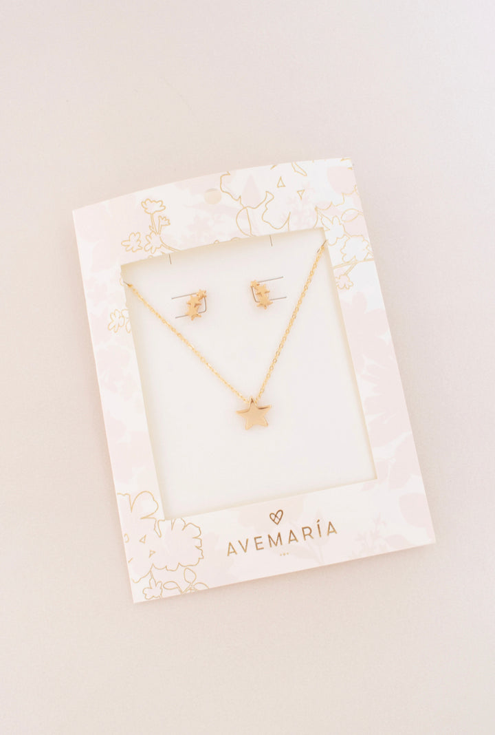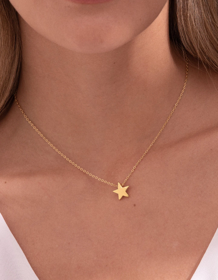Collar elaborado en cadena con baño de oro. Dije en zamak con baño. Broche en acero inoxidable.