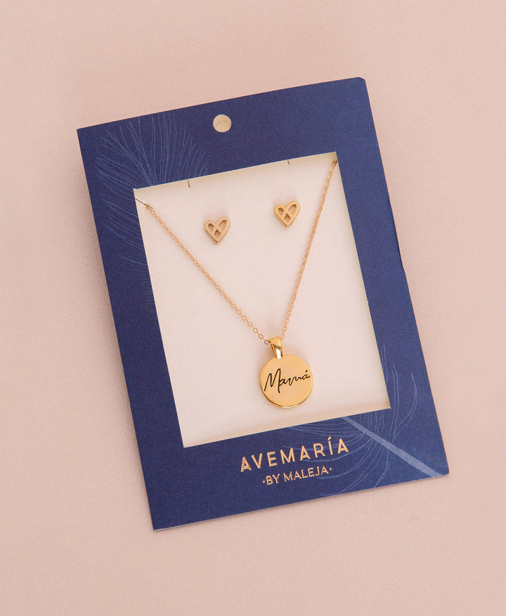 Collar elaborado con cadena y dije con baño de oro.Broche en acero inoxidable.