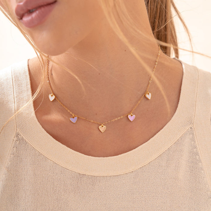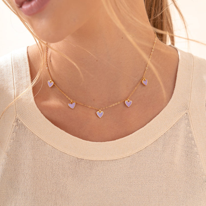 Cadena con baño de oro. Dijes en zamak con baño de oro y pintados a mano. Broche en acero inoxidable.
