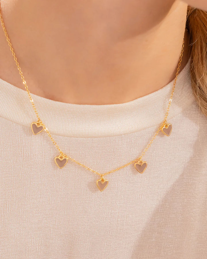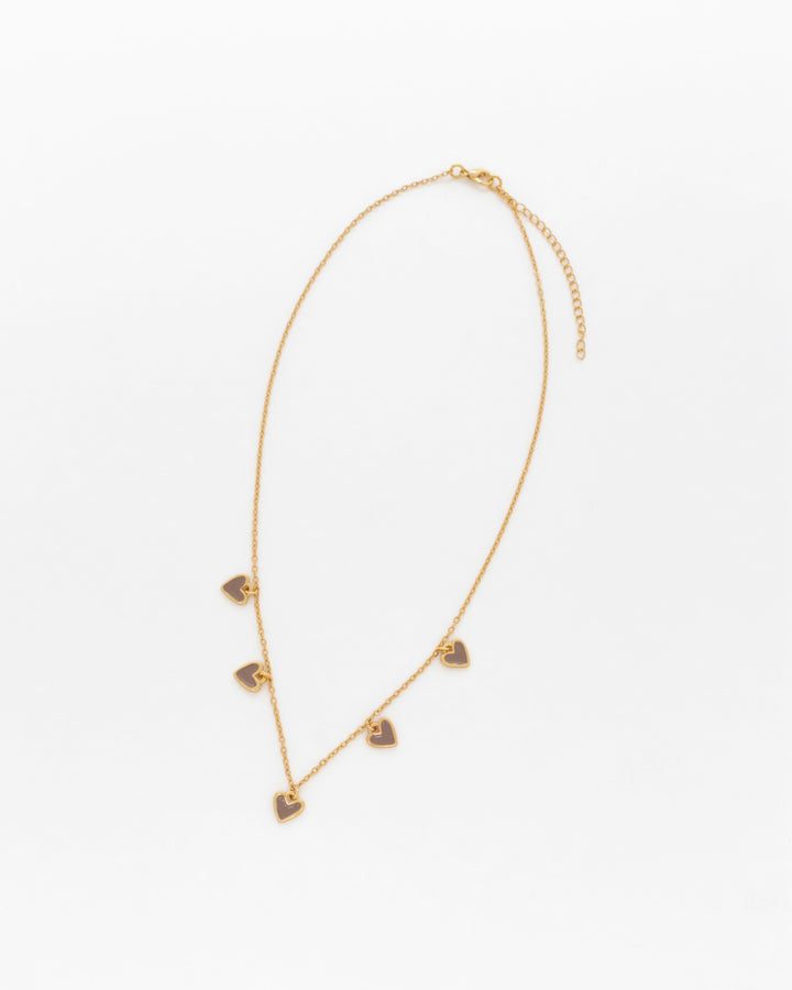 Cadena Multi Corazones Café + aretes