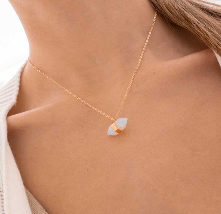 Cadena con baño de oro, broche en acero inoxidable y dije en piedra natural. *NO INCLUYE ARETES