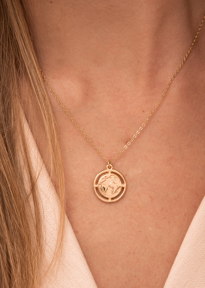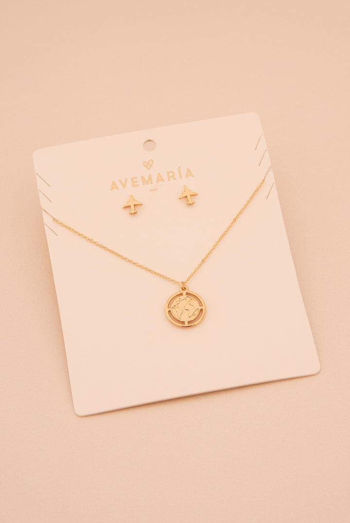 Cadena y dije con baño de oro. Broche en acero inoxidable.