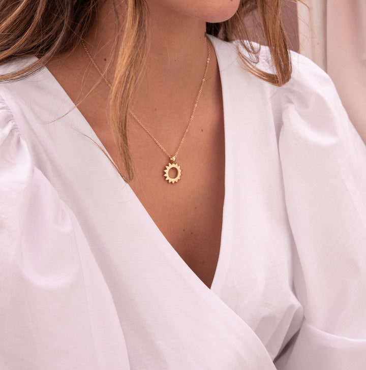 Cadena y dijes con baño de oro. Broche en acero inoxidable. Incluye aretes tipo topos con poste antialergico baño en oro. *Los aretes podrían variar según disponibilidad.