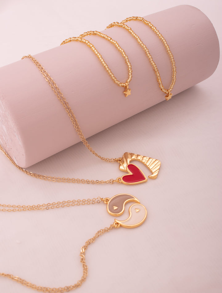 El yin yang explica la existencia de dos fuerzas opuestas pero que se complementan entre si es por esto que estas cadenas con baño de oro de 24K son el regalo perfecto para que compartas con esa persona especial que complementa tu vida.