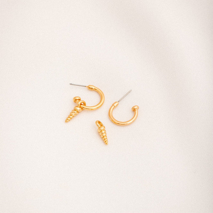 - Incluye: 1 par de candongas de 12mm, 1 par de dijes de caracol que se pueden quitar y poner