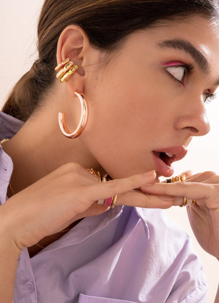 Nuestras candongas son ideales para usarlas en tu día a día y si las combinas con otros productos de la sección aretes puedes armar un earparty tan único como tú, nada mas cool que combinar muchas candongas en una misma oreja.
