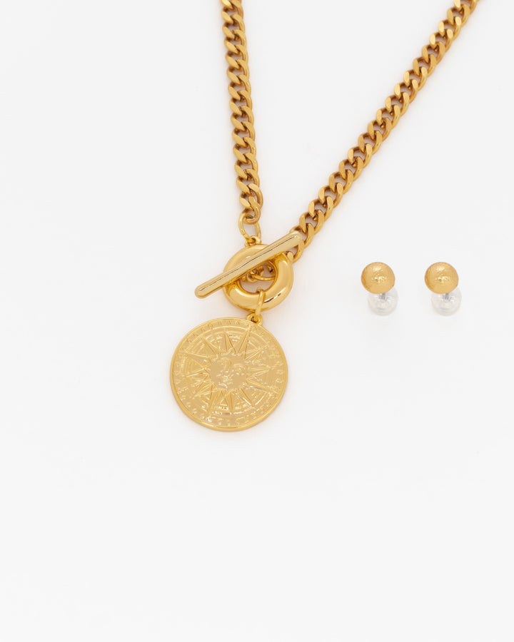 - Dijes del collar en Zamak (aleación de metales) con baño de oro de 24k.