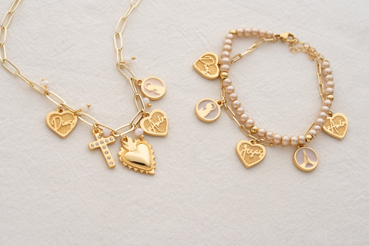 - Dijes del collar en Zamak (aleación de metales) con baño de oro de 24k.