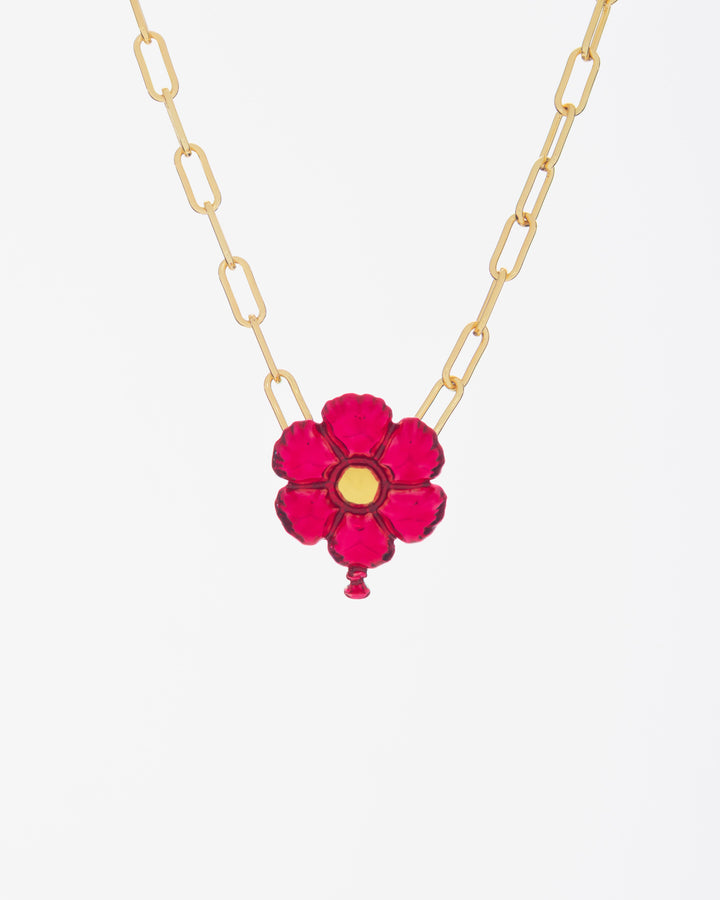 Collar Flor Globo Redondo Fucsia + Aretes By Jose Y Cami
