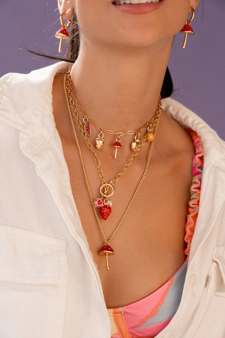 - Dijes del collar en Zamak (aleación de metales) con baño de oro de 24k.