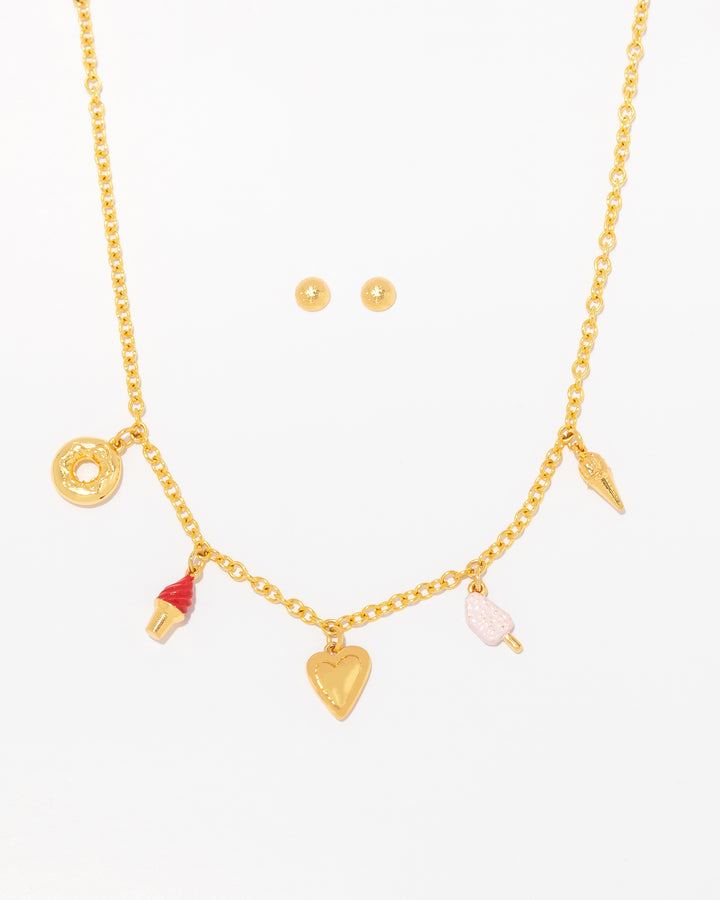 - Dijes del collar en Zamak (aleación de metales) con baño de oro de 24k.