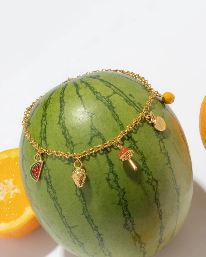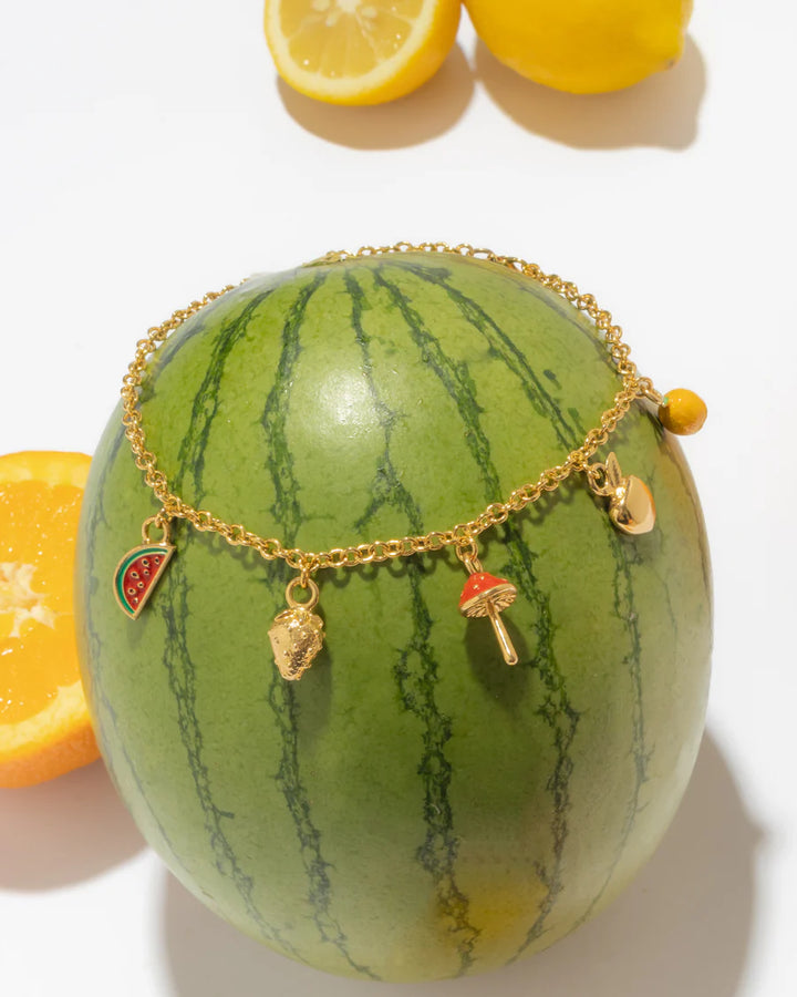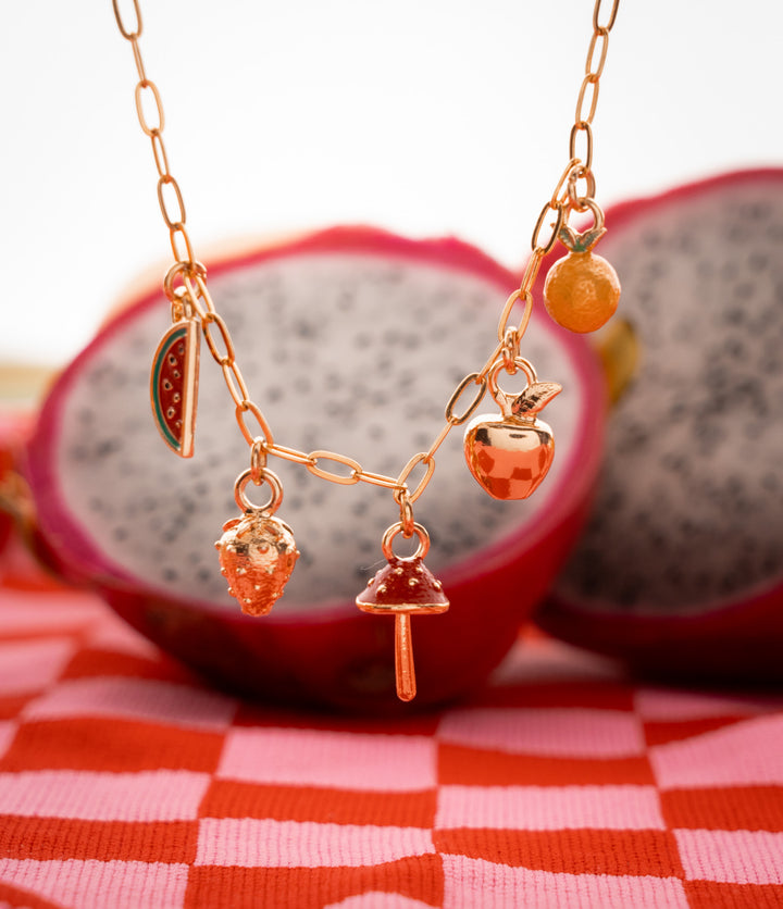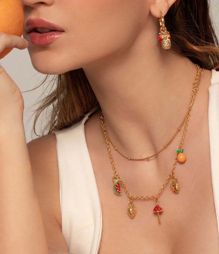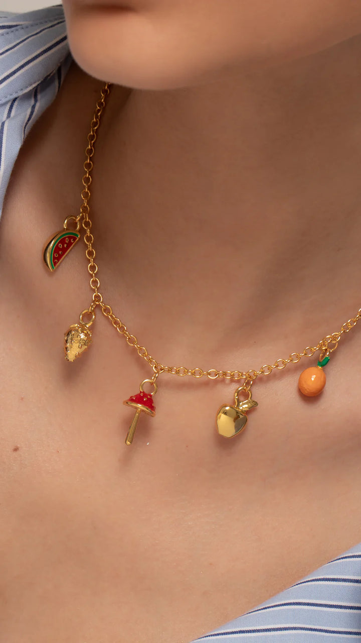- Dijes del collar en Zamak (aleación de metales) con baño de oro de 24k.