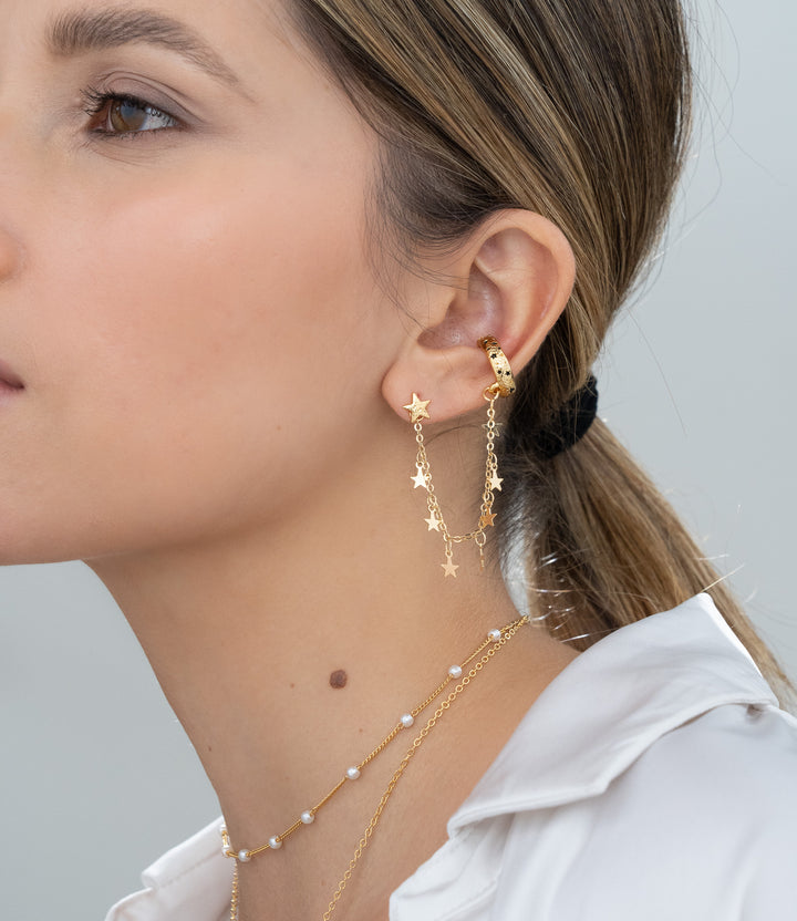 Nuestras earcuff y earpartys son tendencia! Nada más cool que combinar muchos aretes y earcuffs de diferentes tamaños y formas con toda seguridad serás el centro de las miradas. Úsalos en tu día a día si eres amante de las tendencias o en tus fiestas y reuniones más especiales y si los combinas con otros productos de la sección aretes puedes armar un earparty tan único como tú.