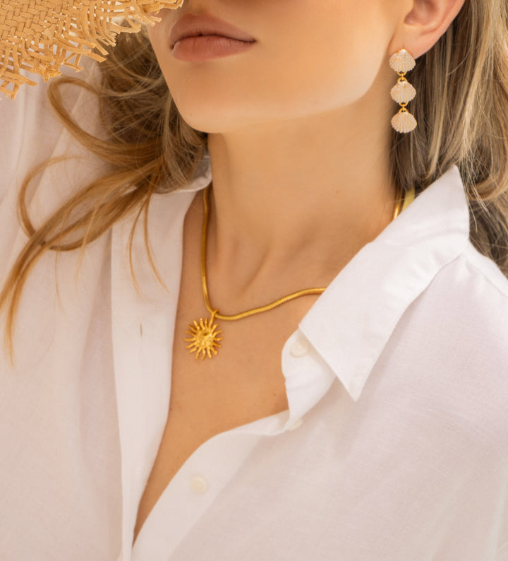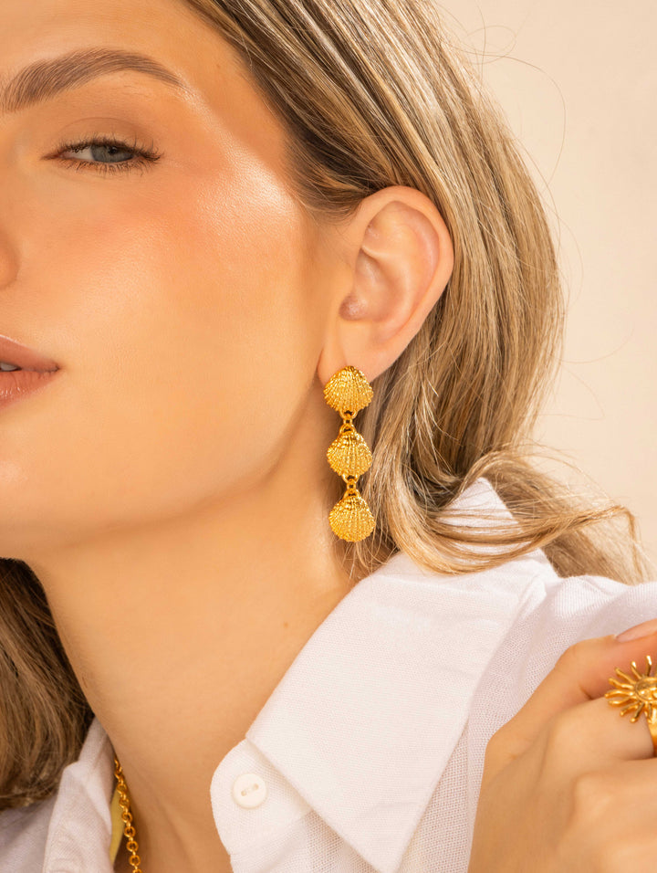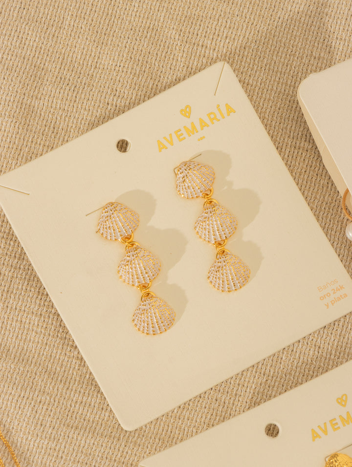 - Aretes elaborados Zamak (aleación de metales) con baño de oro de 24k.