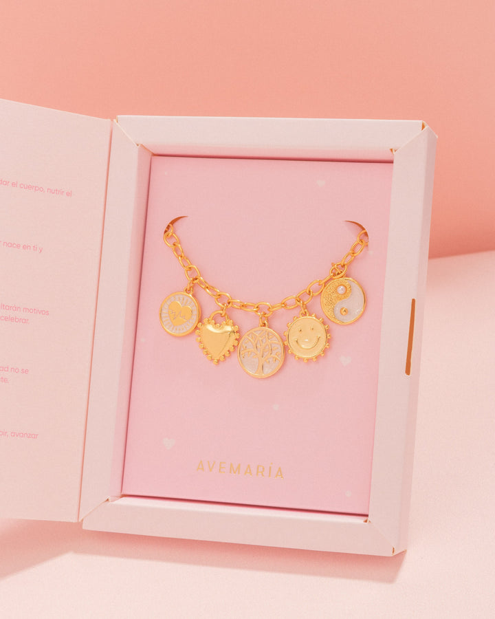 Pulsera Multicharms Deseos Del Corazón + Caja Especial