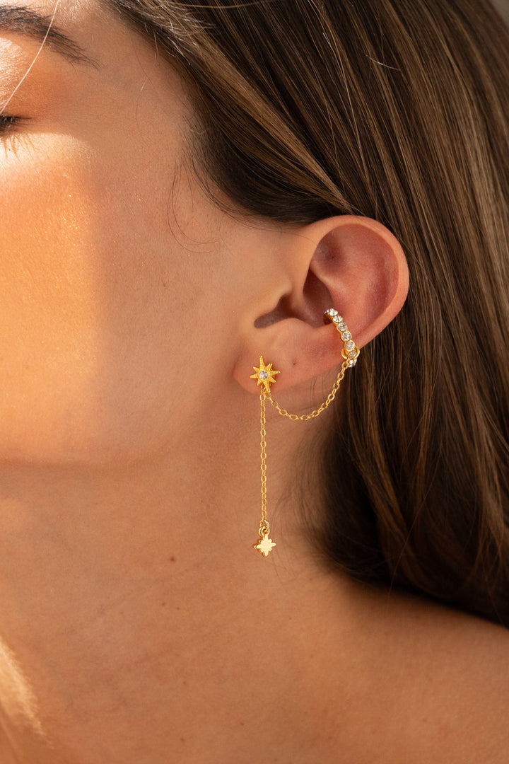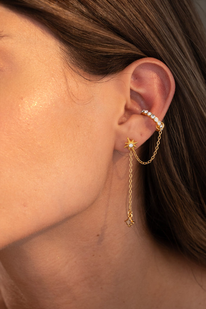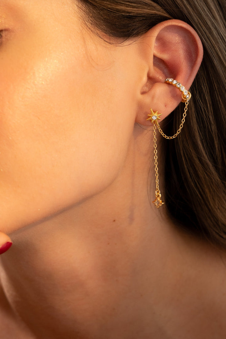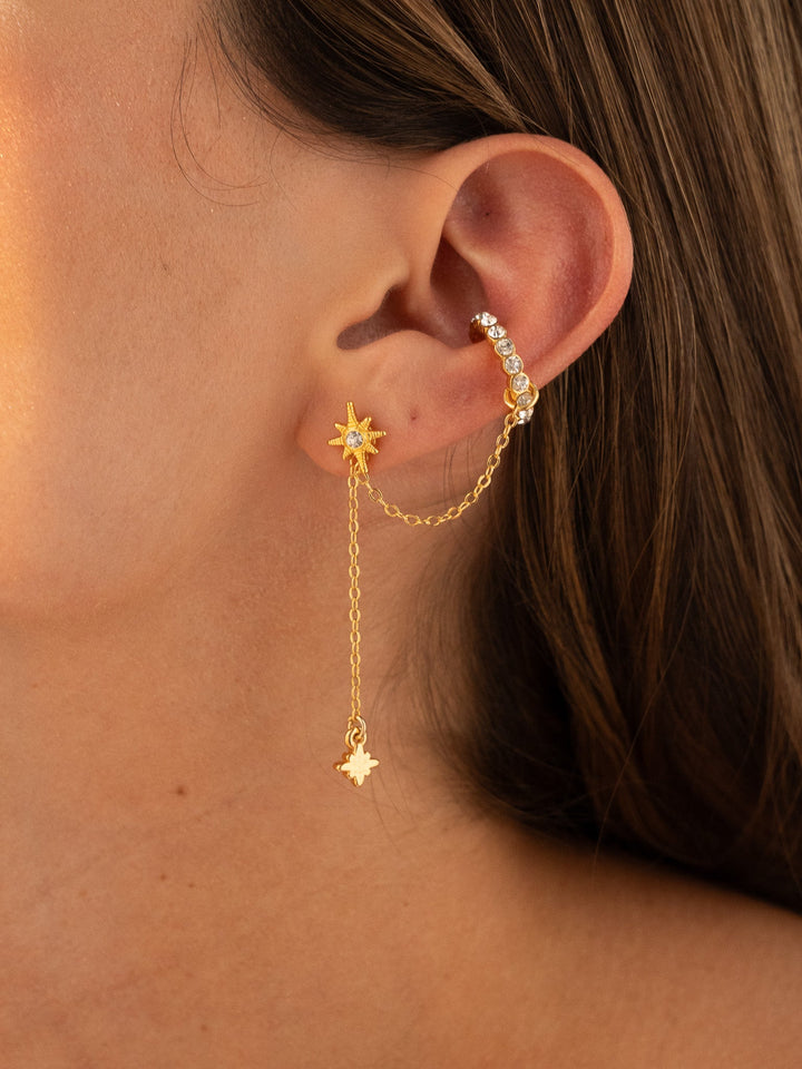 - Incluye: 1 arete solitario, 1 par de topos y 1 unidad de earcuff