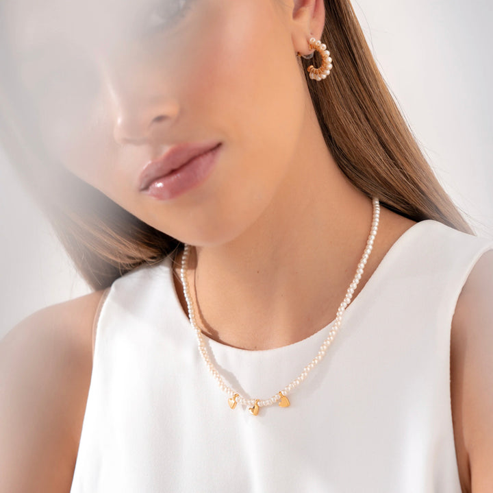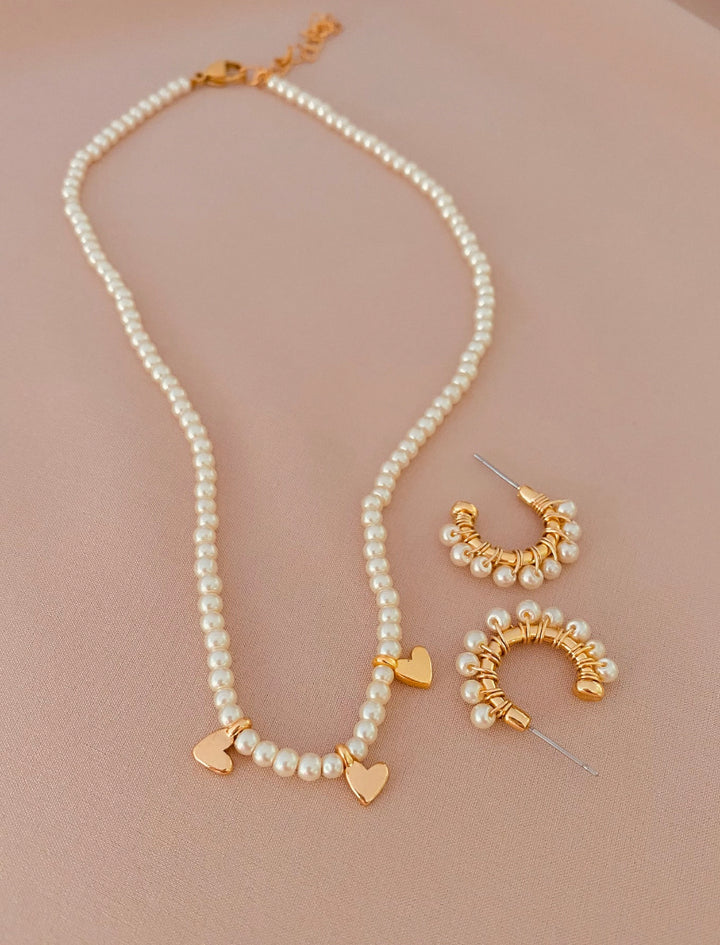 - Incluye 1 choker de corazones y 1 par de candongas entorchadas con perlitas