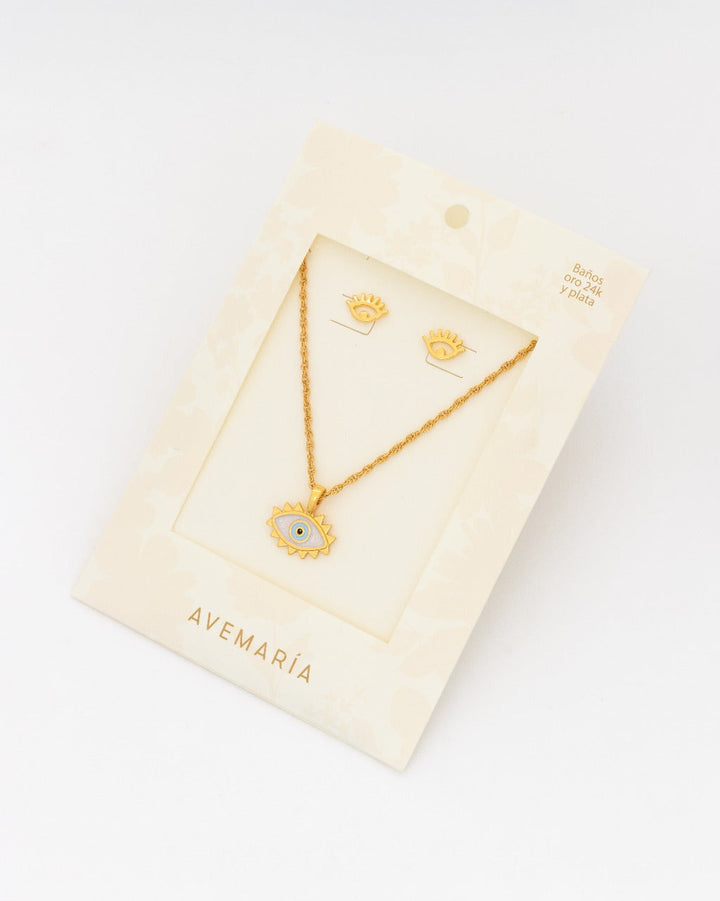 - Incluye aretes tipo topos en forma de ojo (aretes pequeños).