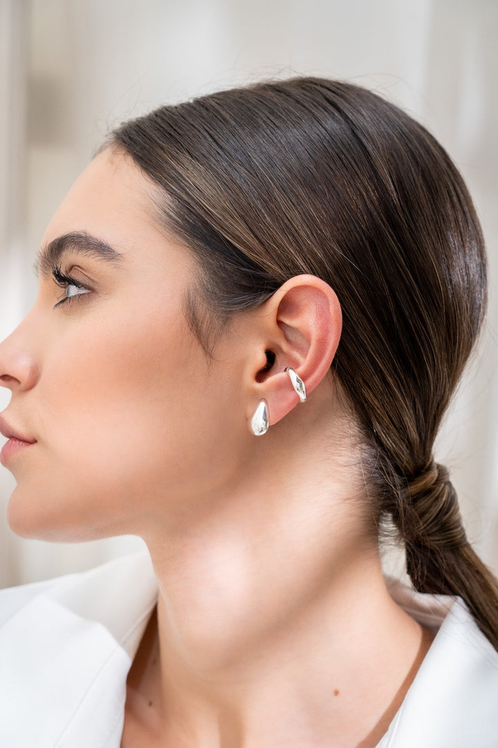 Set De 1 Par de Topos + 1 Earcuff Silver