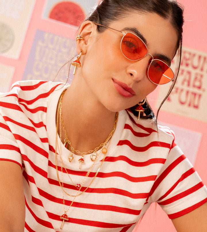 - Cadenas del collar en bronce con baño de oro de 24k.