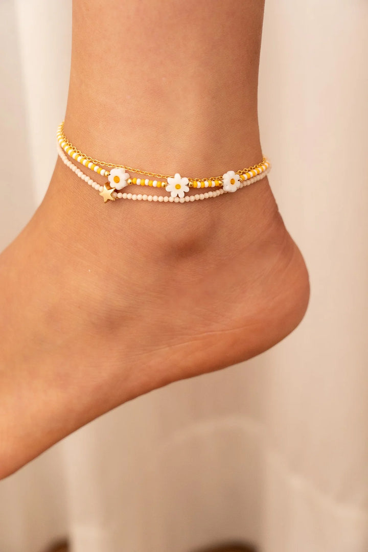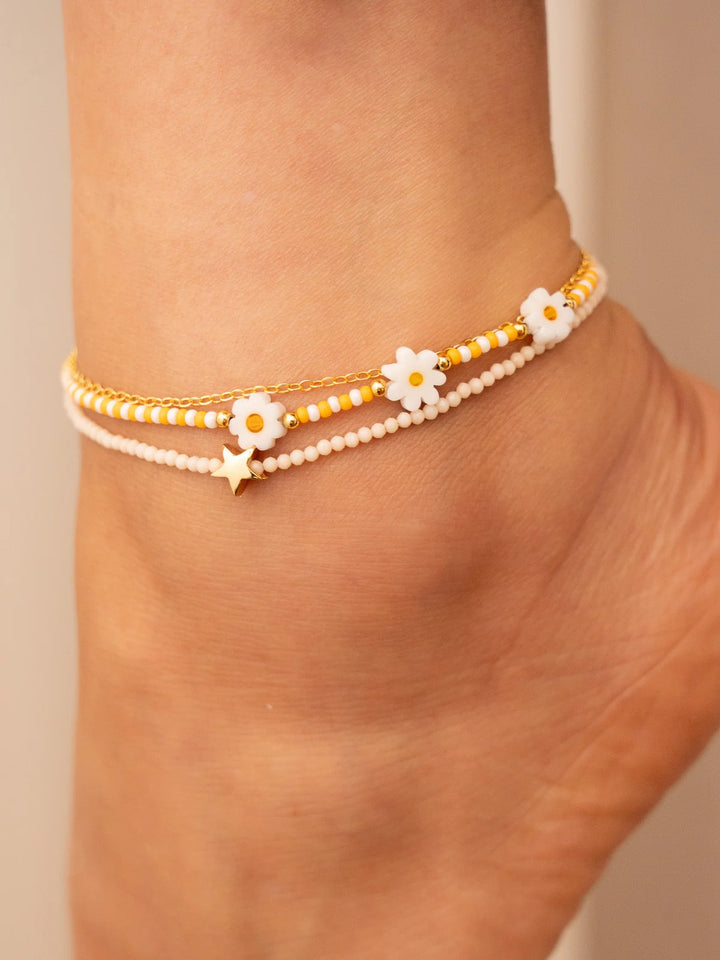Tobillera Estrella Flores + Aretes